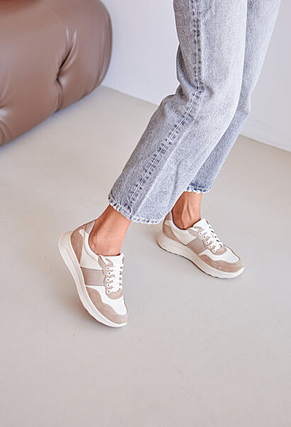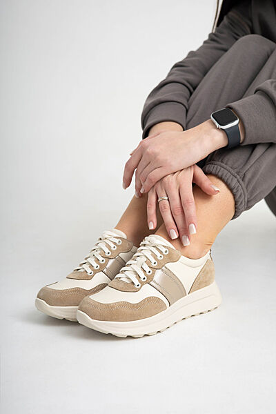 Жіночі кросівки шкіряні, замшеві світлі бежеві.Верх: натуральна шкіра та замша. Всередині: текстиль та шкіра.
