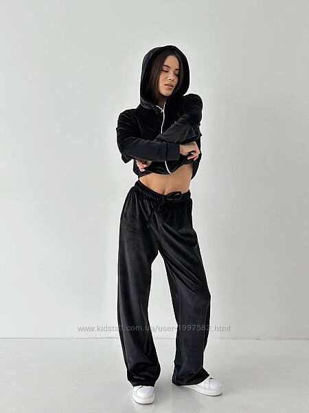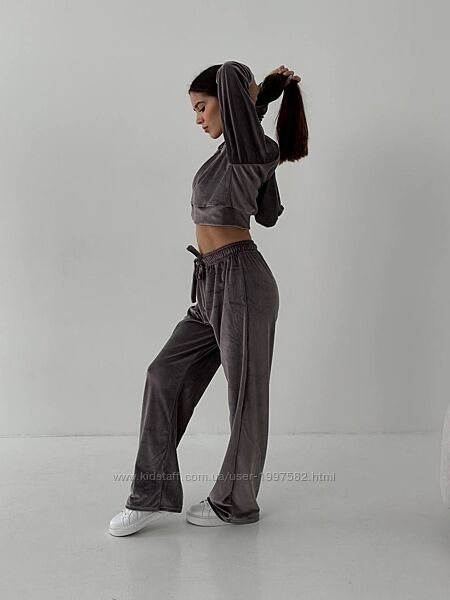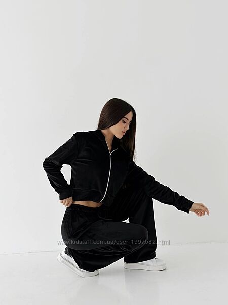 Подробное описание: 141/23 Трендовий велюровий костюм ЛАЙТ Укорочена кофта на замочку з подвійн