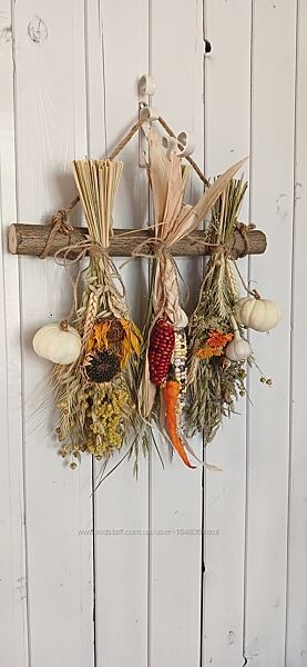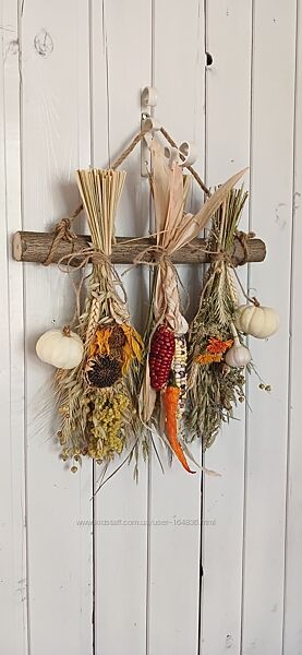 Декор з природних матеріалів, сухоцвіти, натуральні овочі.Прикрасить кухню, лазню.