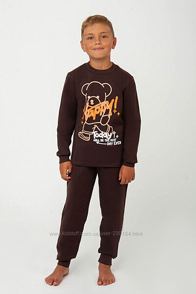 Заміри на останьому фото!Тепла піжама для дітей з начосом. Модель складається з кофти з довгими рукавами на манжетах і коміром-стійкою, а також брюк на манжетах. Піжама доповнена декором - принт, який виконаний методом шовкотрафаретного друку. Полотно натуральне за складом, при пранні трошки сяде