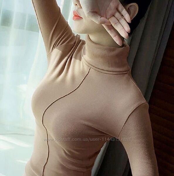 Жіноча тепла базова водолазка має приталений крій, довгі рукави та високу горловину. Спереду виріб прикрашений декоративним рядком по всій довжині.Гольфік виготовлений з м´якусенької термо тканини. Матеріал із приємною текстурою, щільно прилягає до тіла та дуже добре зберігає тепло.