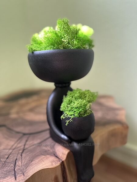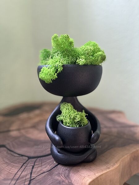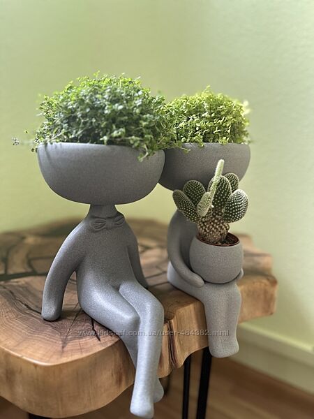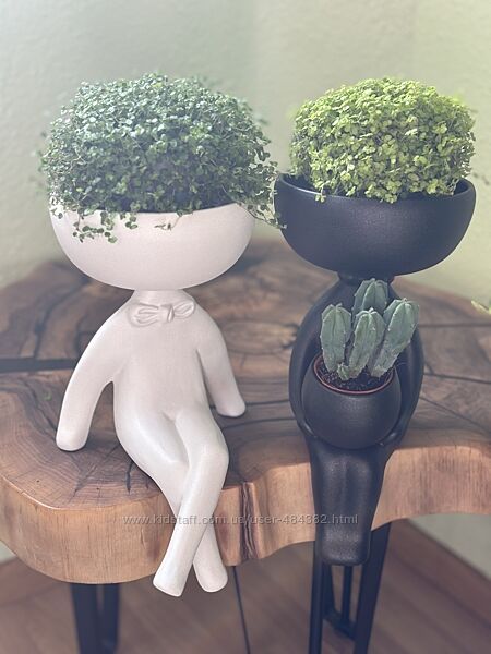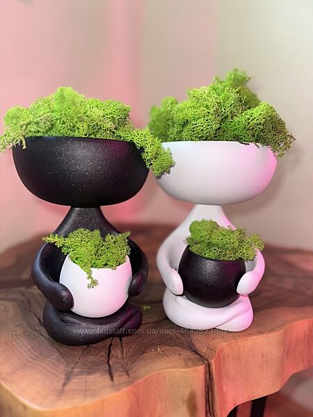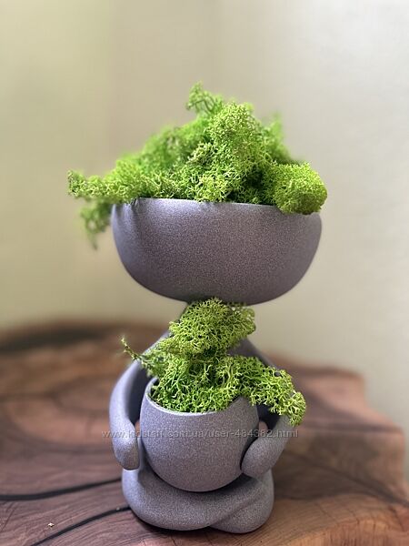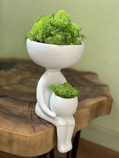 🪴Керамічне кашпо від українського виробника 27*15 см та 0,7 л +стабілізований мох.Чоловічок що сидить без маленького горщика: білий, сірий, бронза, чорний.🪴Керамічне кашпо від українського виробника 27*15 см та 0,7 л +стабілізований мох.