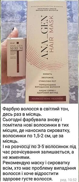 НЕЗМИВНА ІНТЕНСИВНА СИРОВАТКА ПРОТИ ВИПАДІННЯ ВОЛОССЯ "ANA_GEN SERUM",