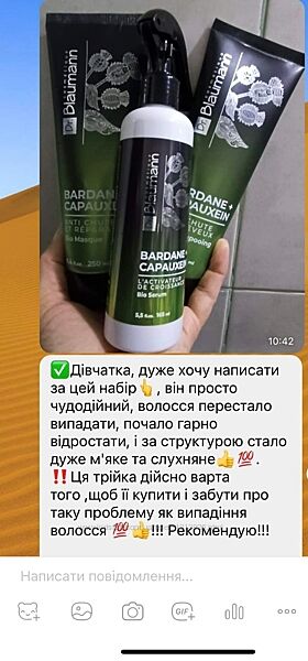 3) Біо-сироватка активатор росту волосся "Bardane + Capauxein" на лікарських травах серії Dr.Blaumann cosmétique, 165 мл. - 444,28 грн.