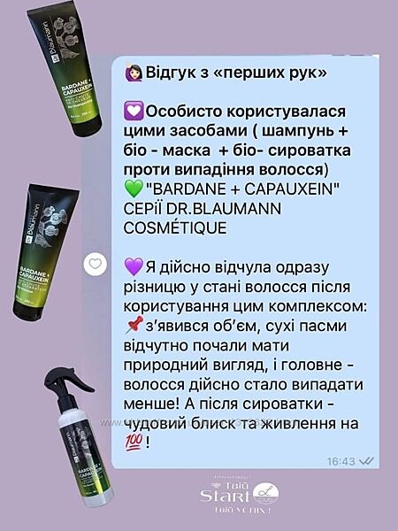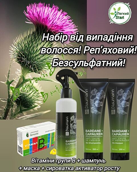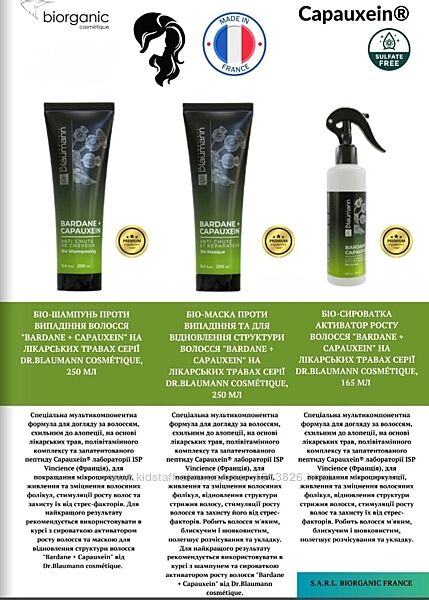 1) Біо-шампунь проти випадіння волосся "Bardane + Capauxein" на лікарських травах серії Dr.Blaumann cosmétique, 250 мл. - 317 грн.