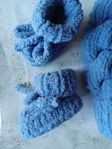 Ніжний, милий та затишний Ведмедик бажає зігріти вашого малюка! В комплект входять - комбез і пінетки! Підійде дитинці 0-3+міс (ріст 56-62см). Комплект звязано з любовю , з ніжної дитячої гіпоалергенної плюшевої пряжі.Ціна комплекту - 750грн