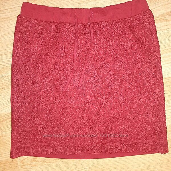 Трикотажная бордовая юбка с кружевом Esmara, р. S 36/38