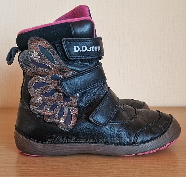Зимние кожаные ботинки венгерского производителя D.D.Step.Выполнены их натуральной кожи, внутри овчинка. Очень теплые и удобные. На липучках.