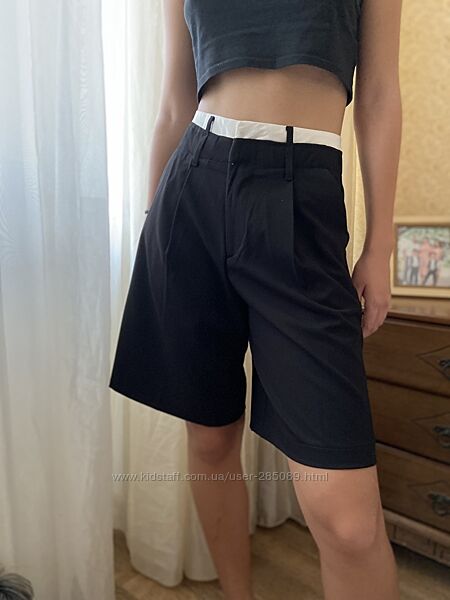 Стильні класичні бермуди останньої колекції Bershka !Контрастний білий пояс- останній тренд сезону!