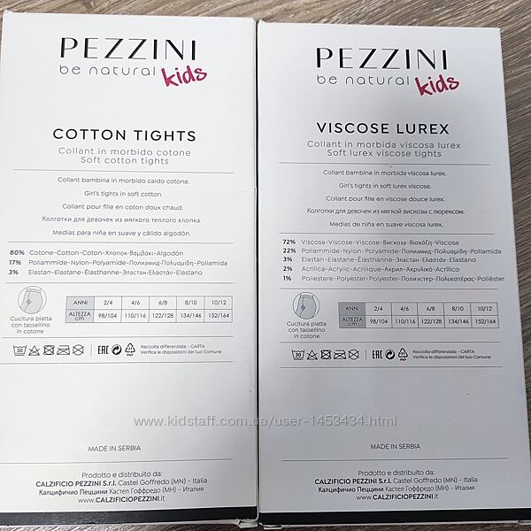 Італійські колготки Pezzini на дівчаток від 2 до 8 років. Якість відмінна, в фірмових упаковках. Заміри зробити не можу, бо ціх колготках п´ятки не має вони зроблені як капронові колготки.Кольори різні.