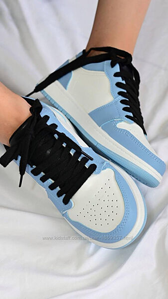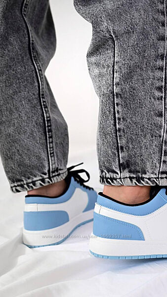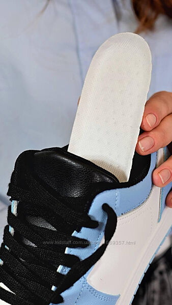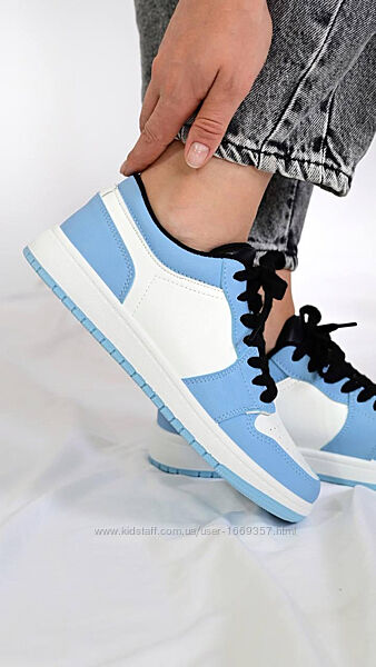 Цвет голубой и белыйМатериал искусственная кожаЛегкая подошва для комфортного передвиженияЧерные шнурки для контрастного акцента