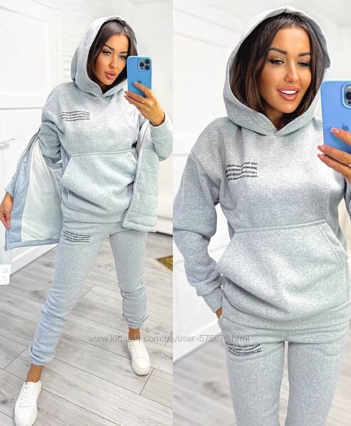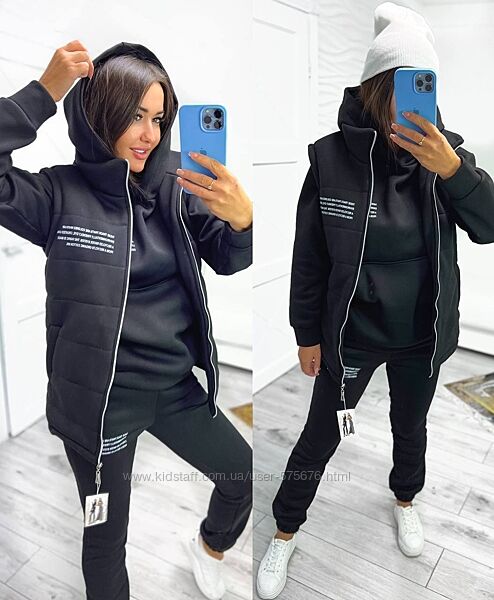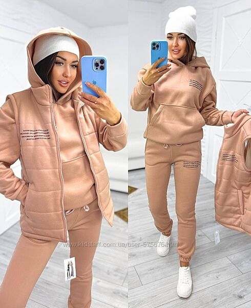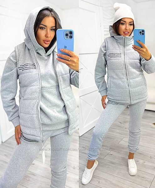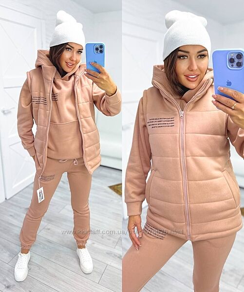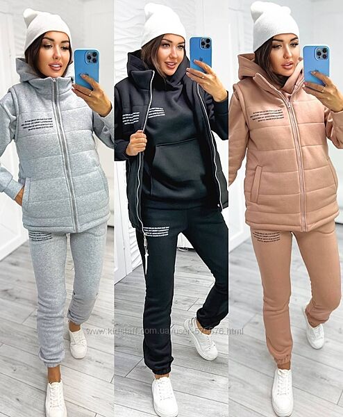 Подробное описание: р.42 до 56р. Костюм теплий трійка об´ємне худі, штани, жилет на синтепоні