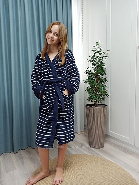 Банний халат дитячий з капюшоном, двома накладними кишенями та поясом.Тканина – плюшевий фліс.