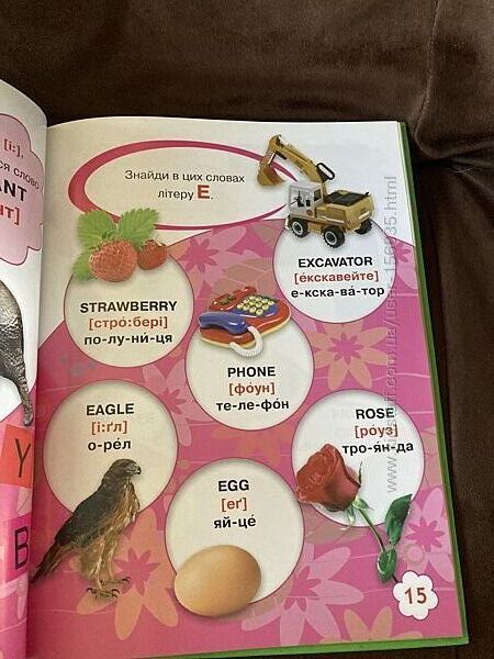 Літери в книжці подаються в алфавітному порядку. Англійські слова мають транскрипцію українськими літерами.Адресовано дошкільнятам та їхнім дбайливим батькам.