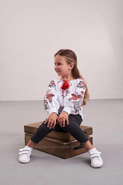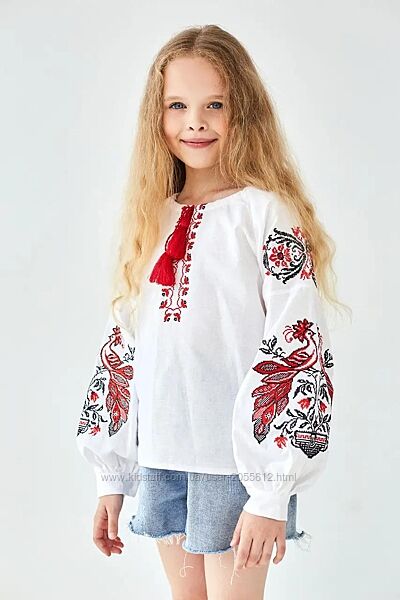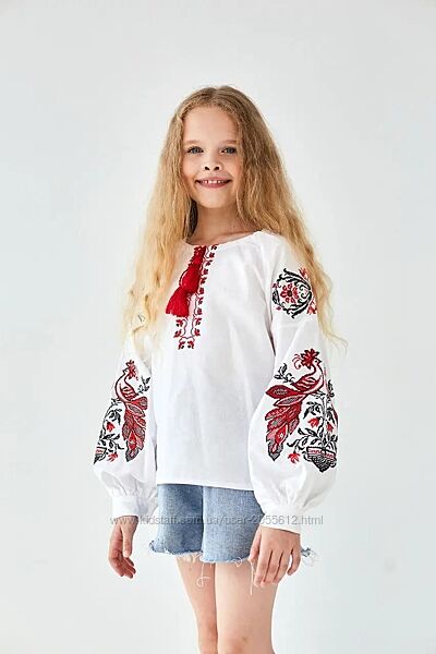 Подробное описание: Вишиванка з червоною жар-птицею для дівчинки