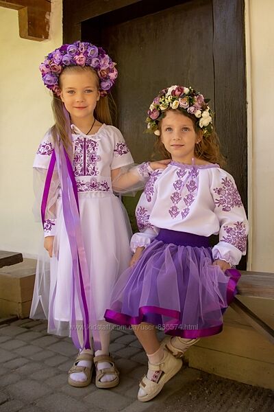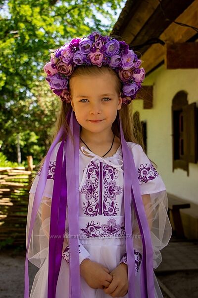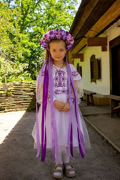 Подробное описание: Вишита сукня для дівчинки Панянка біла з бузковою вишивкою