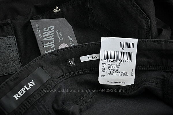 "REPLAY". Оригинал. Стильные мужские черные джинсы.Модель: ANBASS