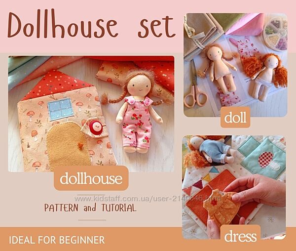 Выкройки и пошаговый мастер-класс по шитью домика, куклы и двухстороннего платья для неё в формате PDF