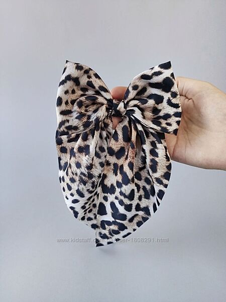 Подробное описание: Шовковий бант для волосся з леопардовим принтом.