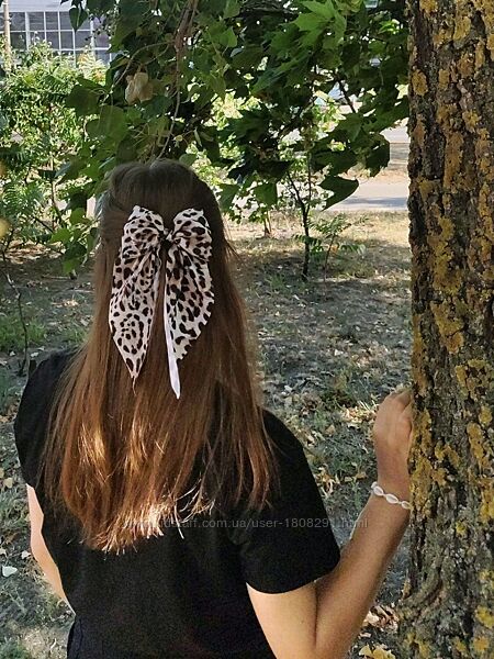 Цей вишуканий шовковий бант із подовженими хвостиками – ідеальний акцент в осінньому образі як для юної модниці, так і для стильної леді.Шляхетний блиск шовку та елегантний леопардовий малюнок створюють неповторне поєднання.