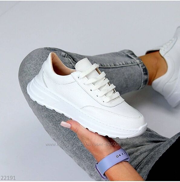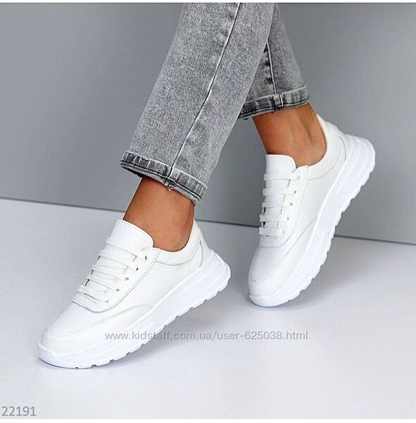 Подробное описание: Жіночі кросівки з натуральноі шкіри білого кольору на вузеньку ніжку