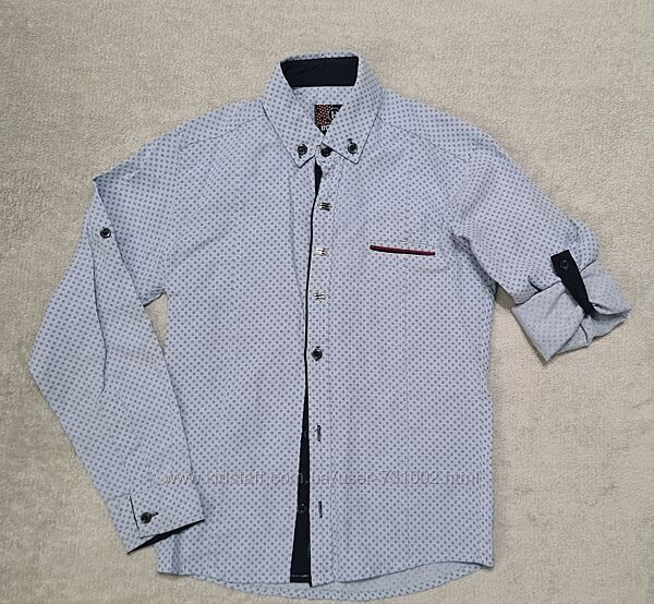 Стильна сорочка для школи в гарному стані. Рукава за потреби підкочуються і фіксуються.Розмір на 7-8 років: