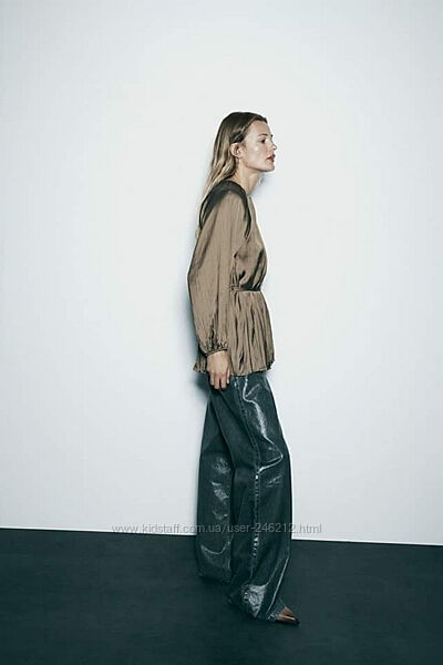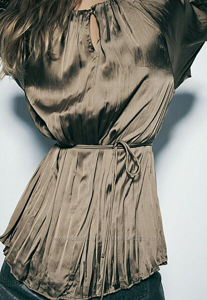 Подробное описание: Атласна блуза Zara з ефектом пліссе M-l