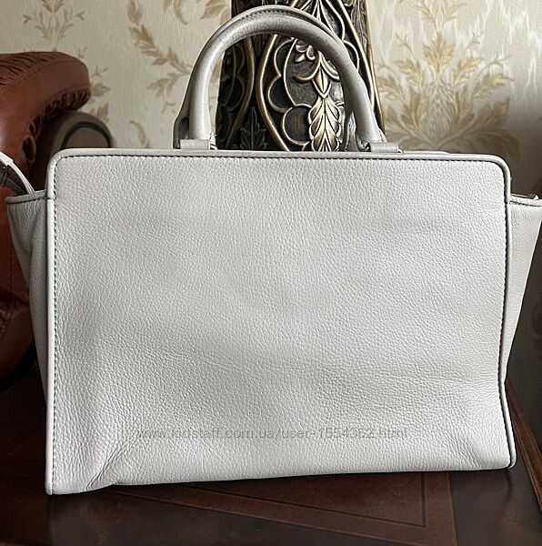 Сумка виготовлена з натуральної шкіри,світло-сірого кольору.Стан гарний,має сліди носіння