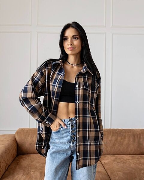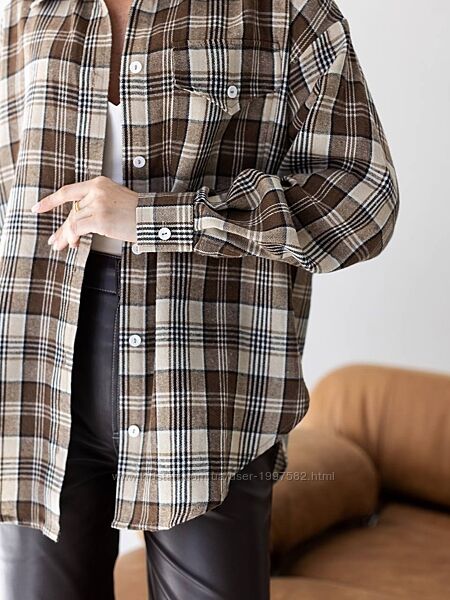 Подробное описание: Жіноча сорочка фланелева картата в клітинку з довгим рукавом