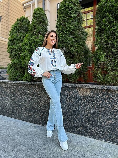 Жіноча вишиванка літня сучасна мережка блуза вишита сорочка біла