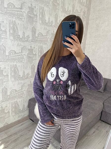 Подробное описание: Домашній костюм, піжама кофта штани ТМ Lady. Теплая зимняя махровая пижама
