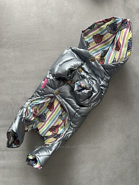 Крутой стильный комбинезон для собачкиВерх плащевка (не пропускает воду), наполнитель - синтепон, внутри гладкий яркий подклад