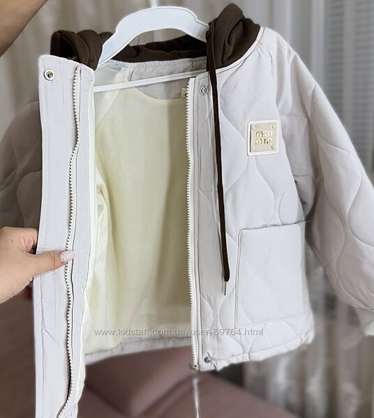 Подробное описание: Стильная куртка бомбер для девочки с трикотажным капюшоном, р.110-128