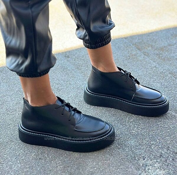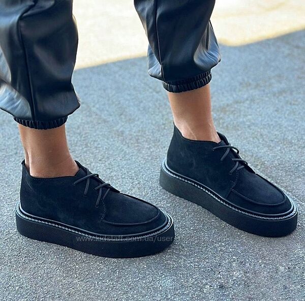 Подробное описание: 36-41 рр черевики низькі на шнурку натуральна шкіра/замша на платформі чорн