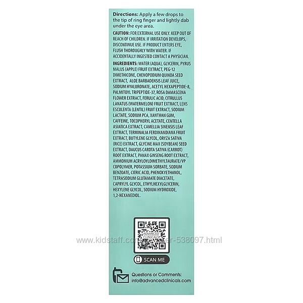 Подробное описание: Advanced Clinicals Puffy Eye Serum профессиональная корректирующая сыворотк