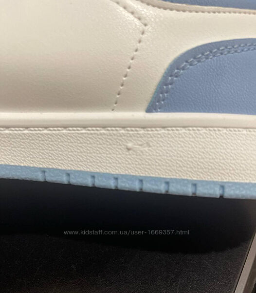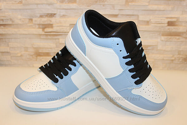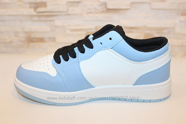 Цвет голубой и белыйМатериал искусственная кожаЛегкая подошва для комфортного передвиженияЧерные шнурки для контрастного акцента