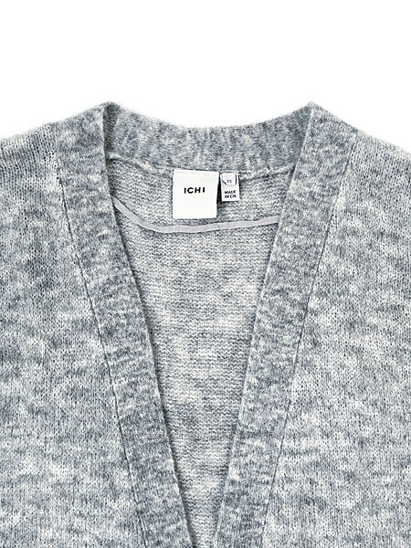 Стильний кардиган AMARA у світло-сірому меланжевому кольорі від данського бренду ICHI.Кардиган виконаний зі змішаної тканини з альпакою.