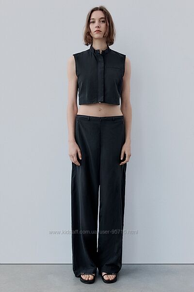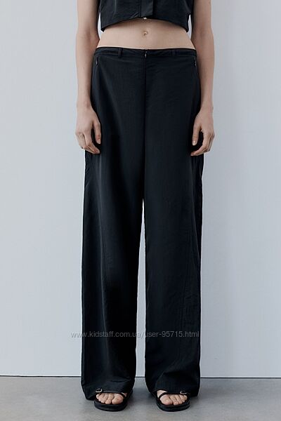 Подробное описание: Чорні штани Wide leg з плащової тканини Zara - S, M
