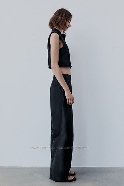 Чорні штани Wide leg з плащової тканини Zara - S, M