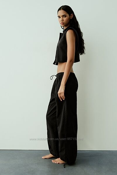 Подробное описание: Чорні штани парашюти з бавовни Zara - XS, M