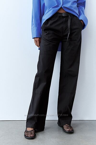 Подробное описание: Чорні прямі штани з бавовни з ремнем Zara - 34, 36, 38, 40
