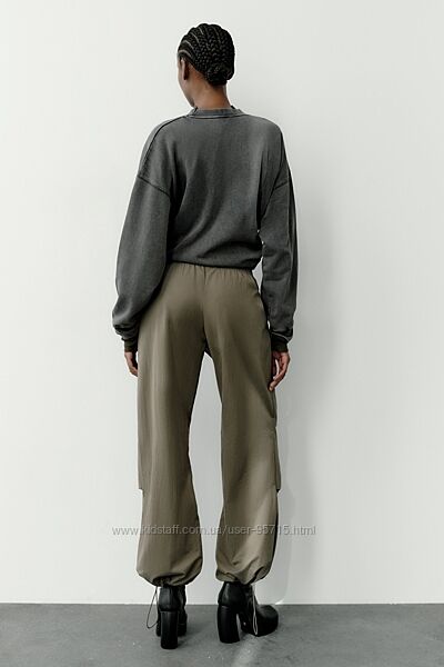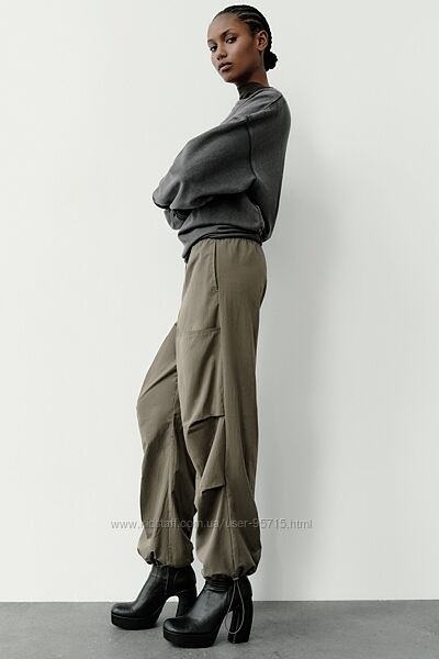Подробное описание: Нейлонові штани вільного крою з кишенями Zara - M, L - Хакі