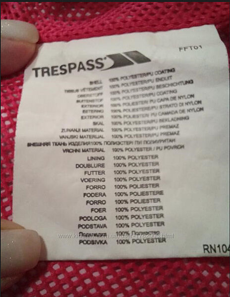 Подробное описание: Бесплатная доставка Ярко-розовая ветровка trespass, фирменная куртка