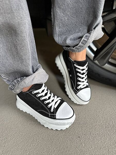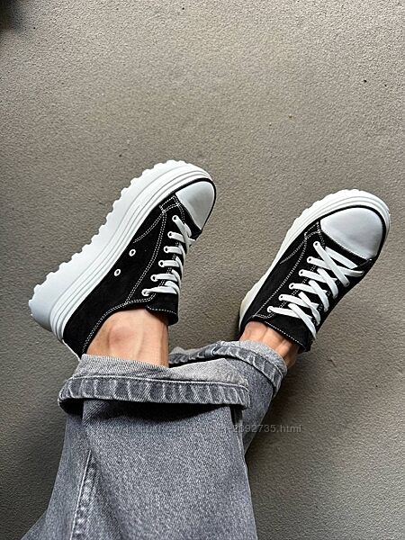 Кеди жіночі замшеві чорні з білою шкіряною вставкоюАртикул: 7500