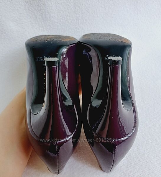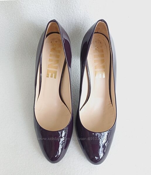 Пропоную бордові туфлі з натуральної лакованої шкіри, від Nine. Колір ближче до гнилої вишні. Уживані 1 раз акуратно, стан відмінний.Розмір вказаний 38, довжина устілки всередині 25 см, ширина 7,8 см, каблук 7,5 см.