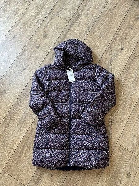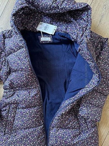 Куртка для дівчинки фірми Mango. Куртка прямого,довгого фасоном, з коміром-стіцкою та капюшоном. З боків кишені з застібкою кнопки. Спереду застібка на блискавку.СКЛАД: 100% поліестер. Підкладка: 100% поліестер.