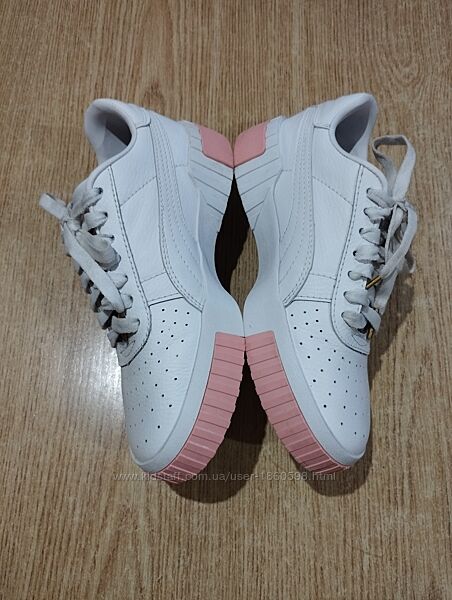 Белые кожаные кроссовки Puma, спереди перфорация на коже. Производство Вьетнам.Размер указан евро 37, стелька 23,2 см, ширина 8 см.