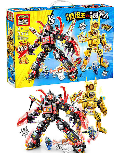 Конструктор Скибиди Туалет Клок мен vs Красный Монитор 482 деталей. Skibidi