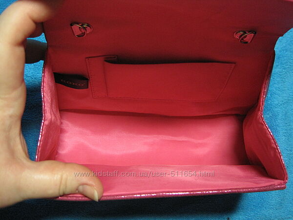 Сумка невеличка, стандартна для прогулянкових, або театральних сумочок. Внутрі підклад атласний. Чистенький, без слідів носки. Є петельки для ручки на плече. Наприклад тоненька ручка з ланцюжка.