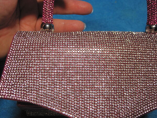 Сумочка вся у стразах! Як спереду, так і позаду, знизу і навіть ручка! Камінчики НЕЙМОВІРНО виблискують на сонці, або при штучному освітленні. Камінці не пластик, СКЛО! Фото ніяк не передасть блиску, нажаль. З такою сумочкою не можна залишитись непомітною.